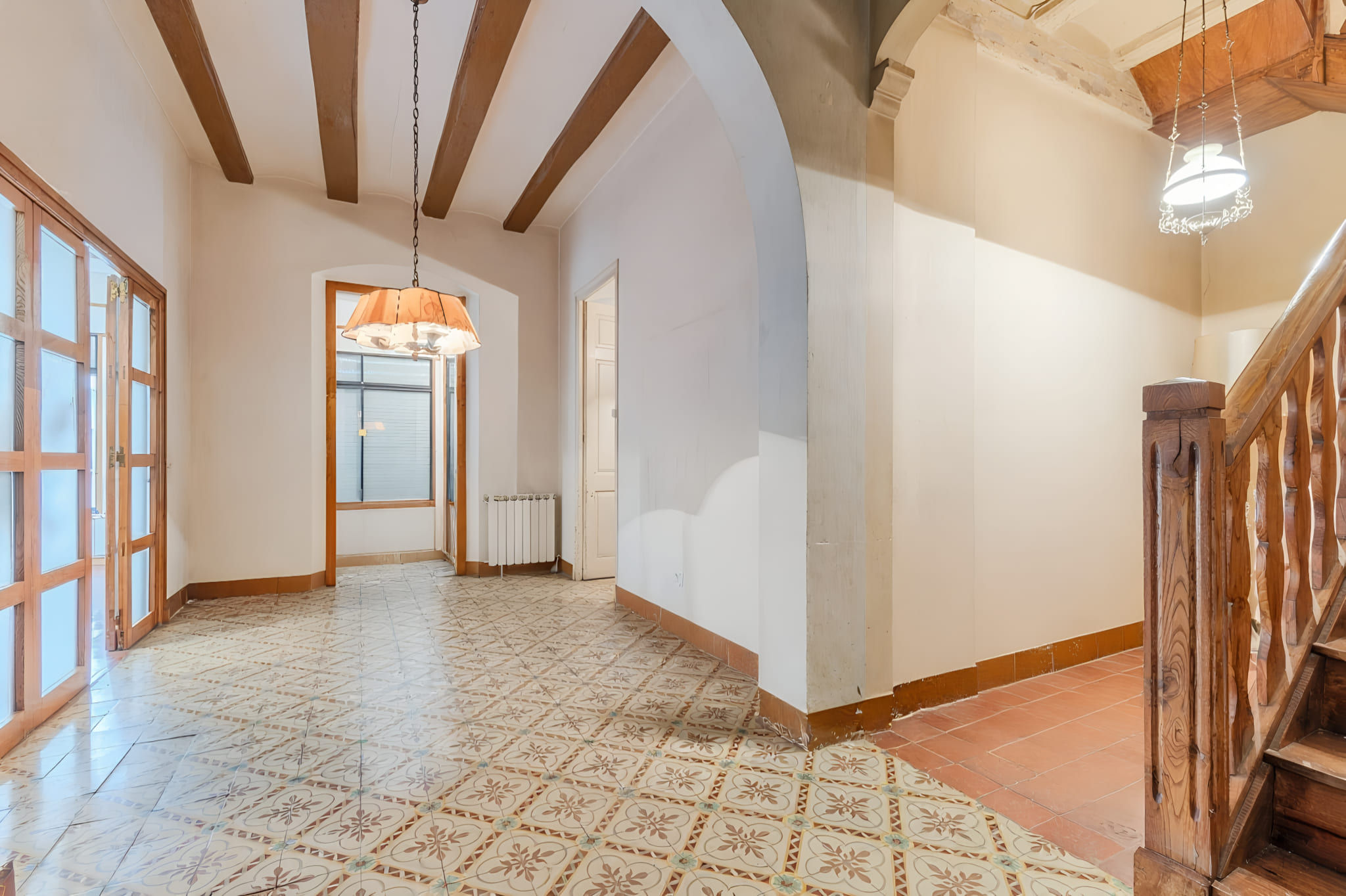 Hi ha propietats que tenen la capacitat d’aturar el temps, i aquesta finca de 1892 és, sens dubte, una d’elles. En creuar el seu llindar, es percep immediatament la noblesa d’una època on les cases es construïen per durar segles. Els sostres infinits i la llum que es filtra pels grans finestrals creen una atmosfera d’elegància que l’arquitectura moderna difícilment pot replicar. Cada rajola dels seus terres originals i cada biga de fusta expliquen una història que espera ser rescatada per començar un nou capítol.